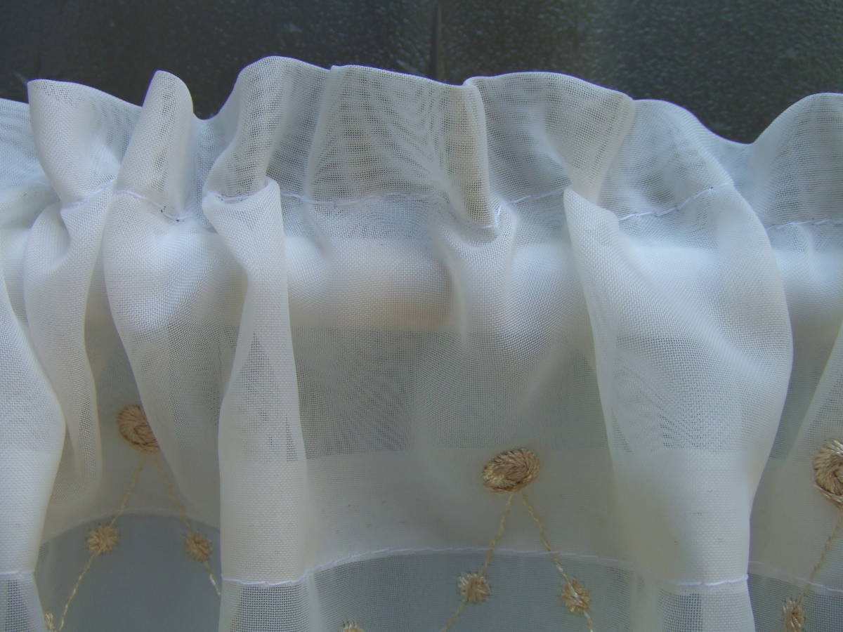 ■生地:ポリエステル100% ■サイズ:実寸幅200cmx丈61cm ■色:オフホワイト ■商品名:MK45-834 ■その他:小窓は勿論、お部屋の間仕切りや、棚などの目隠しとしてもお使いいただけます。トルコ製の生地です。裾に幅45㎜のトリムを付けております。 |