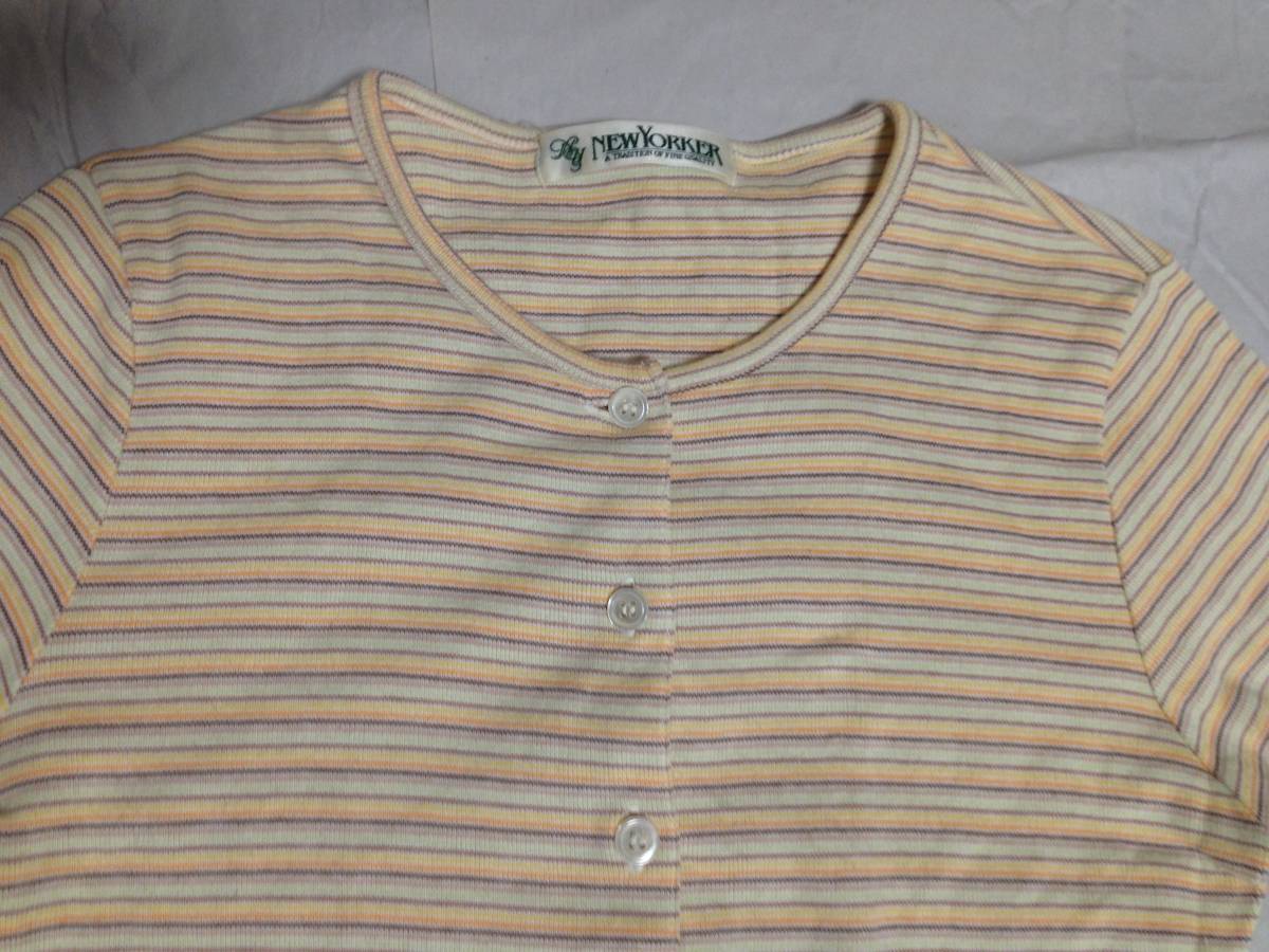 ★ニューヨーカー NEW YORKER カーディガン カットソー 半袖 パステルカラー 前開き ボーダー レディース Mサイズ | |||