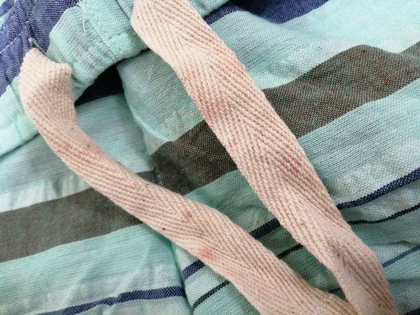 ダメージ箇所 :ウエスト付近や紐に茶色いシミがあります。(画像4、8)