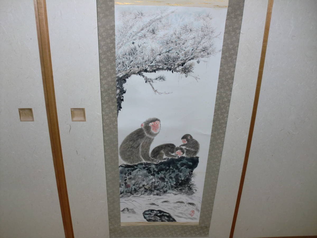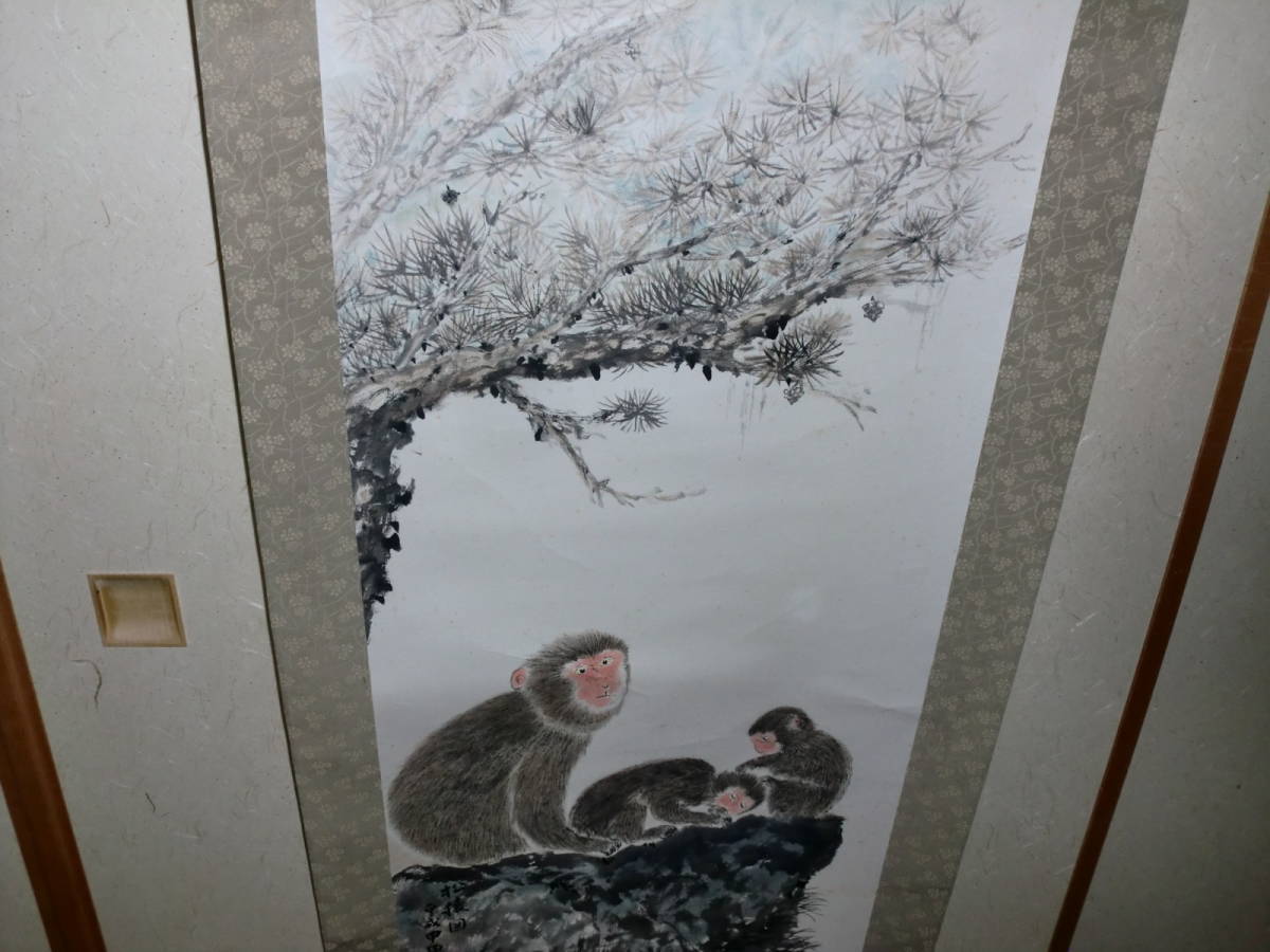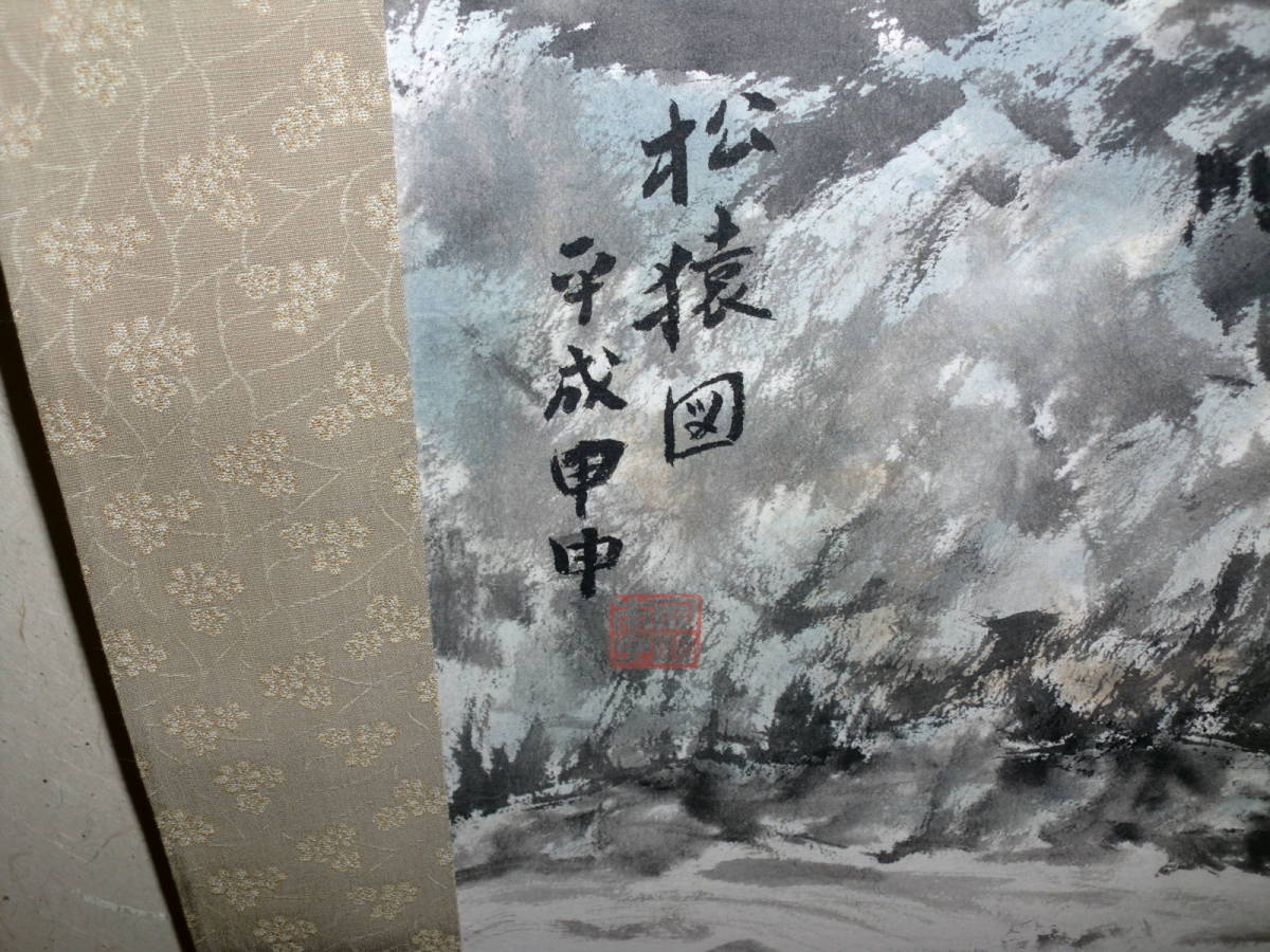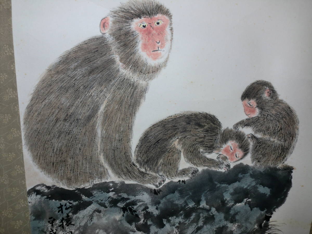 【模写】 掛軸 中国画 開運 吉祥 トテモほのぼのとした松猿圖 在印 美品 2004年作 猿 サル
