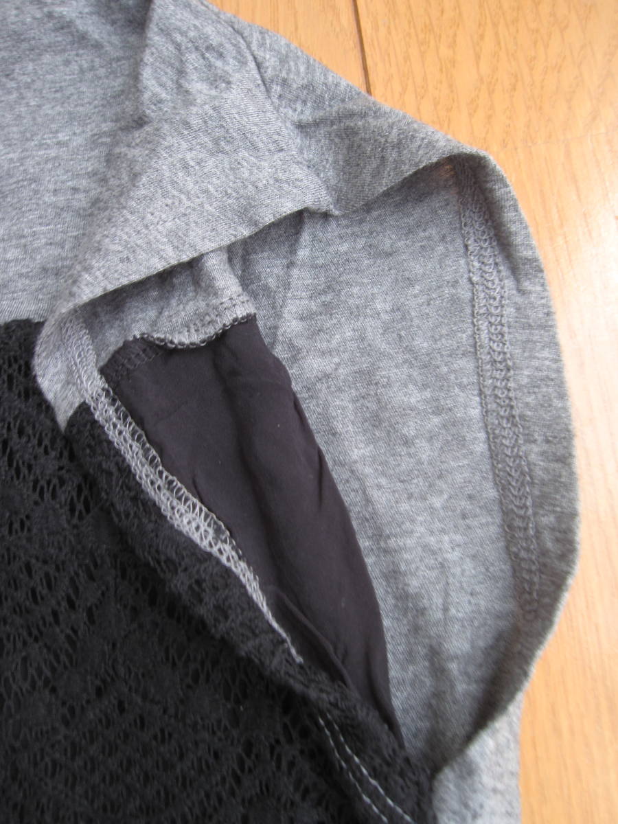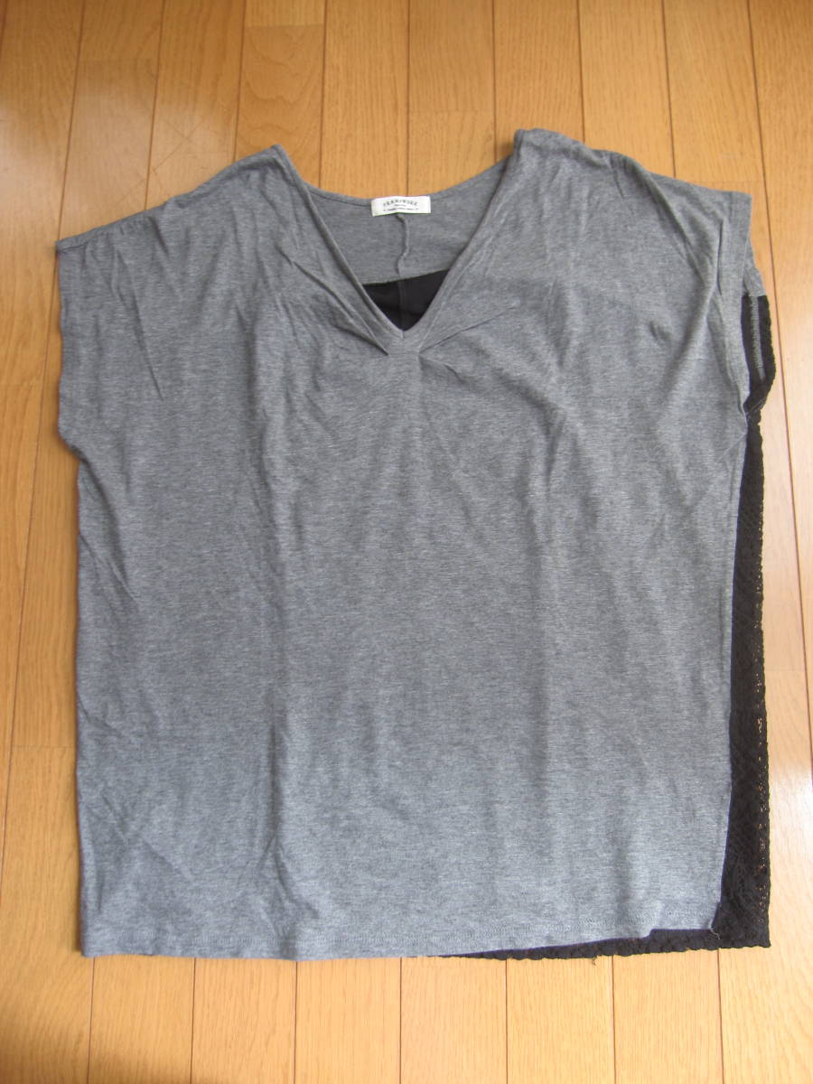 ほどよいVネックと袖のカッティングがきれいなシルエット。うしろが上部分から途中切り替えになっていて大人カラーのブラックレース。