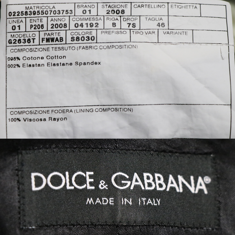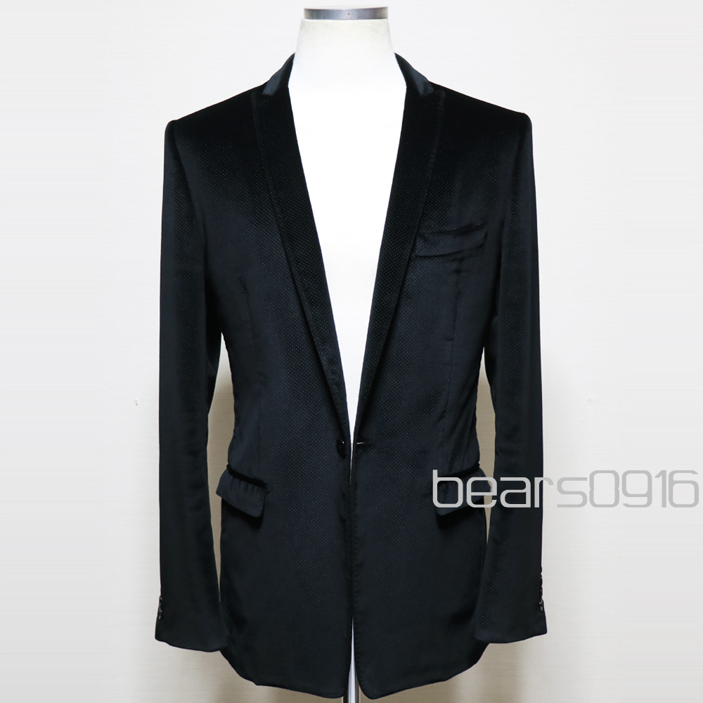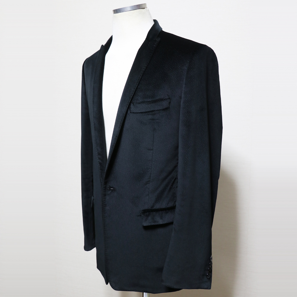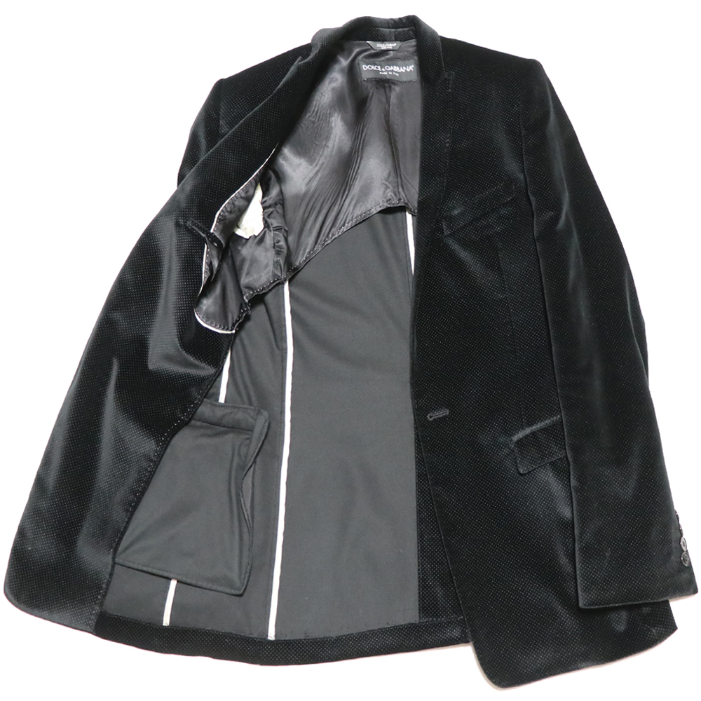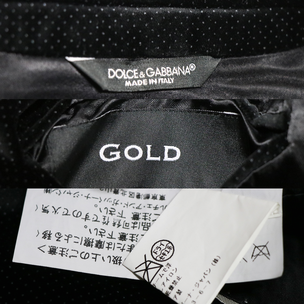 美品 日本正規品 DOLCE&GABBANA GOLD ナロー ピークドラペル ピンドット ベロアジャケット 黒 46サイズです。