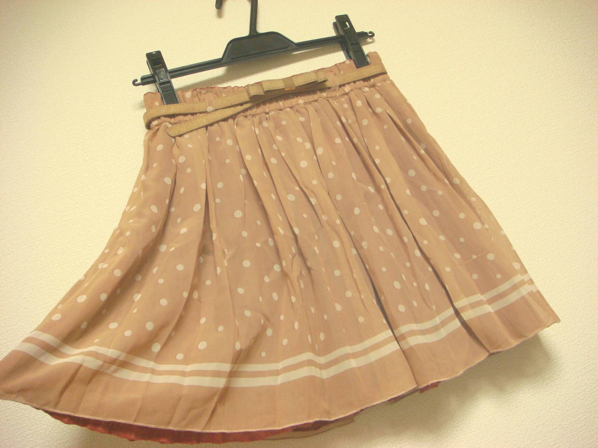オリーブデオリーブ ジャージープリーツ×ドットシフォン おリボンベルト付き リバーシブル スカート 未使用 新品