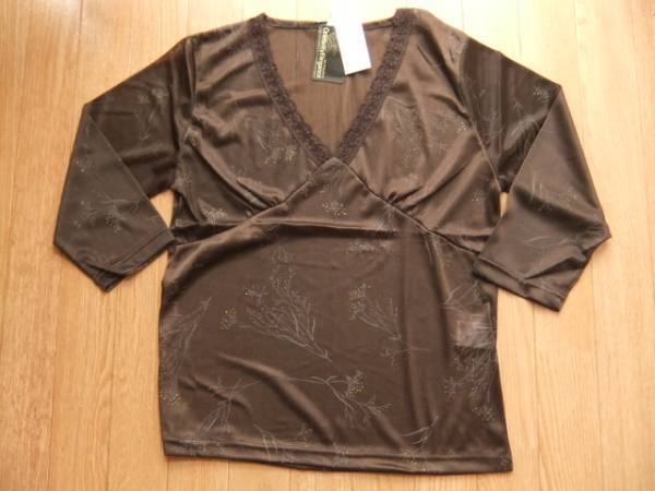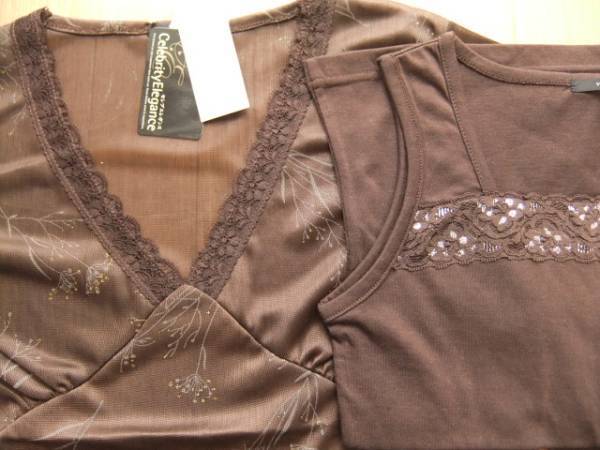 新品M★花柄濃茶のネットレースカットソーアンサンブル
