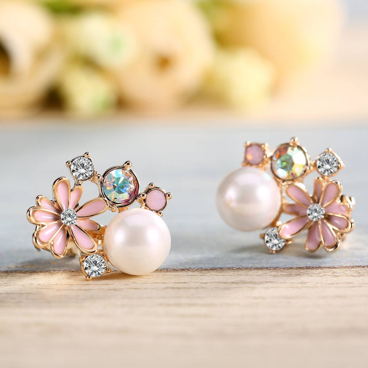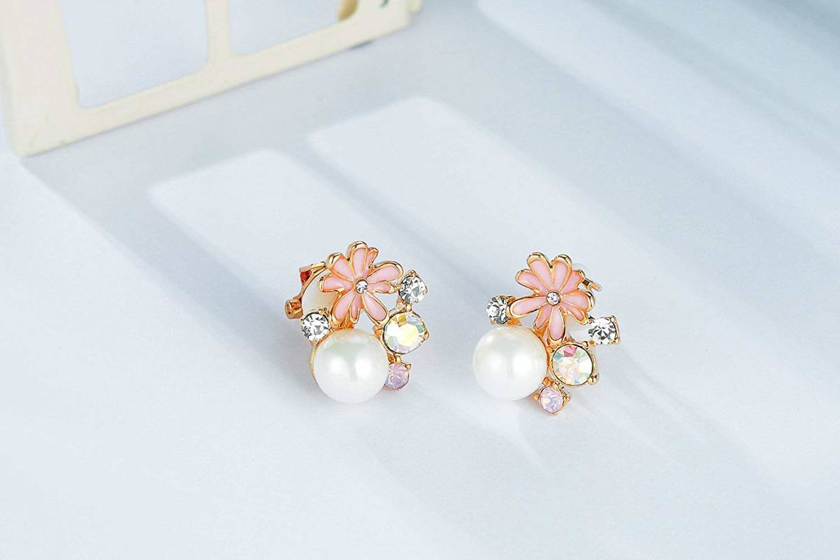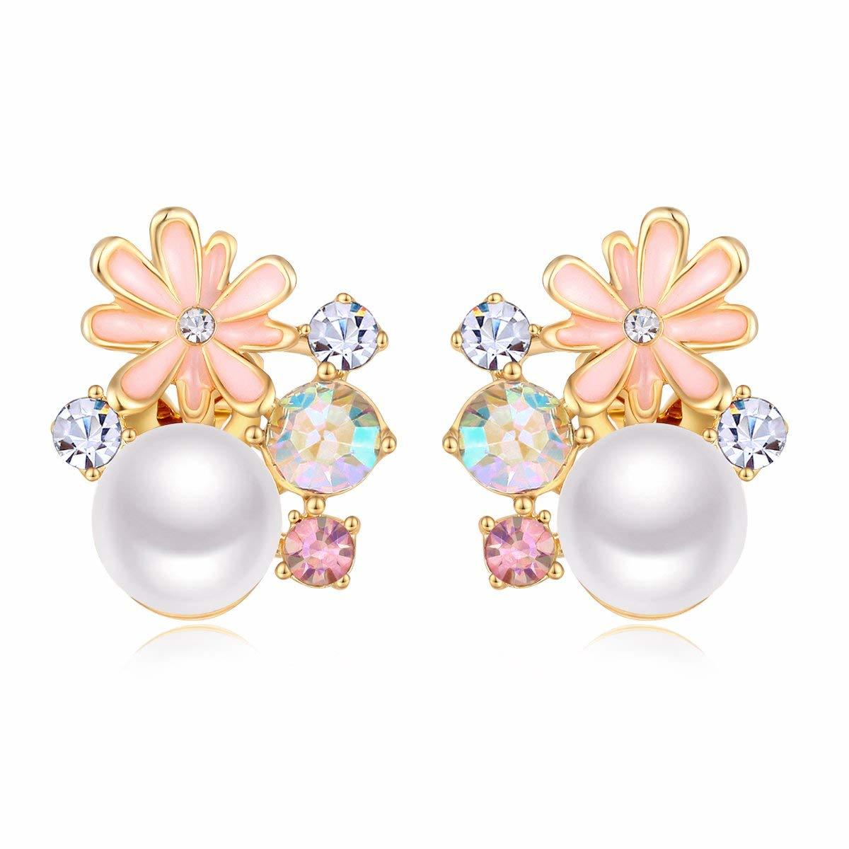 Ostory 優美スタイル デージー&パール ピアス ピアス風 イヤリング アクセサリー 新品