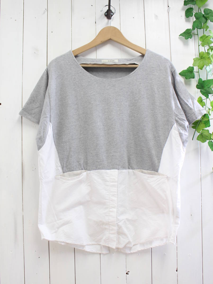 *アンディコール un dix cors*ドロップショルダー シャツ切替え 鹿の子カットソー(38)/a171