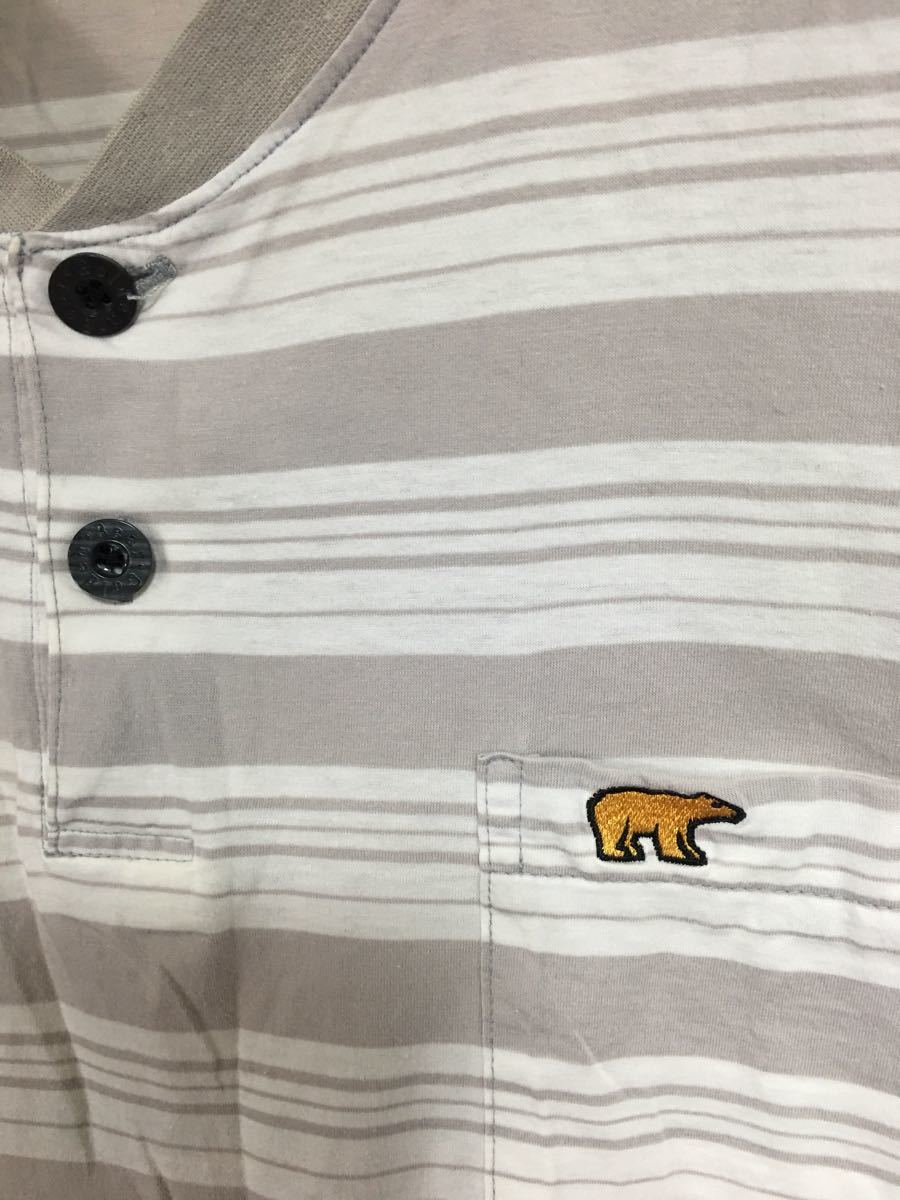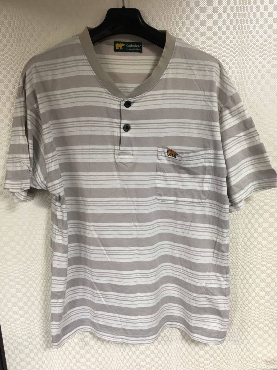 ゴールデンベアのヘンリーネック半袖シャツです。サイズはM表記で平置き脇下身幅53着丈67肩幅50センチ位です。