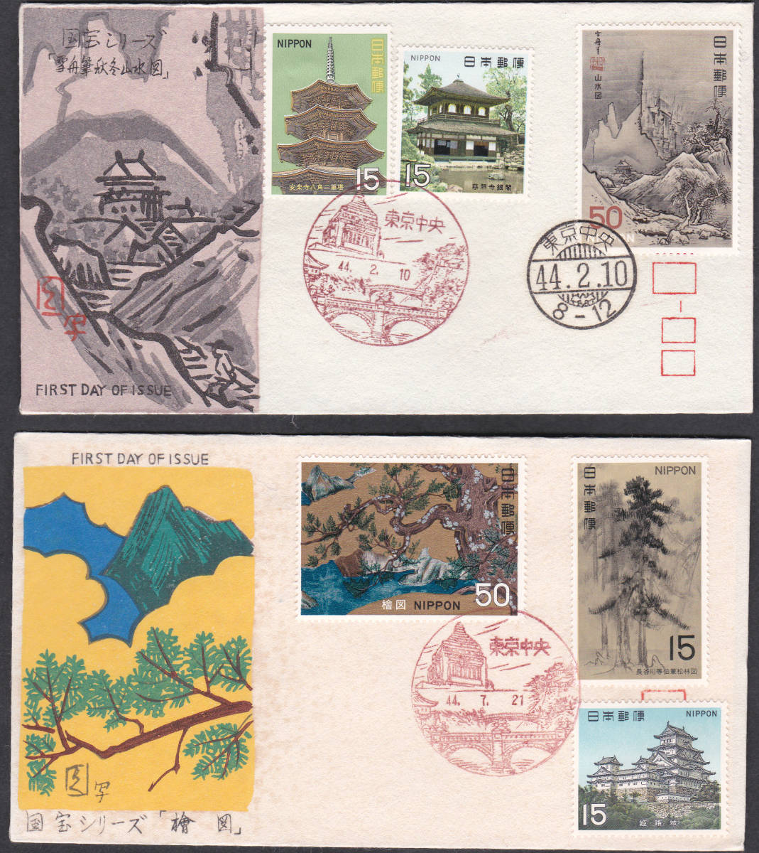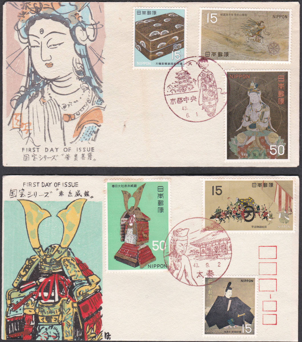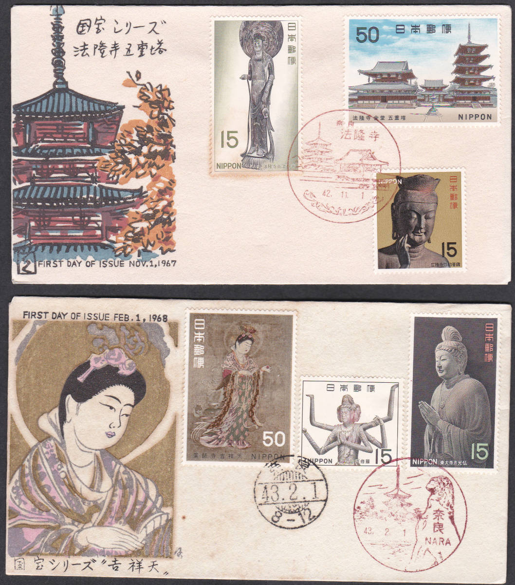 FDC 1967-69年 国宝シリーズ 第1次 全7集A 完  松屋