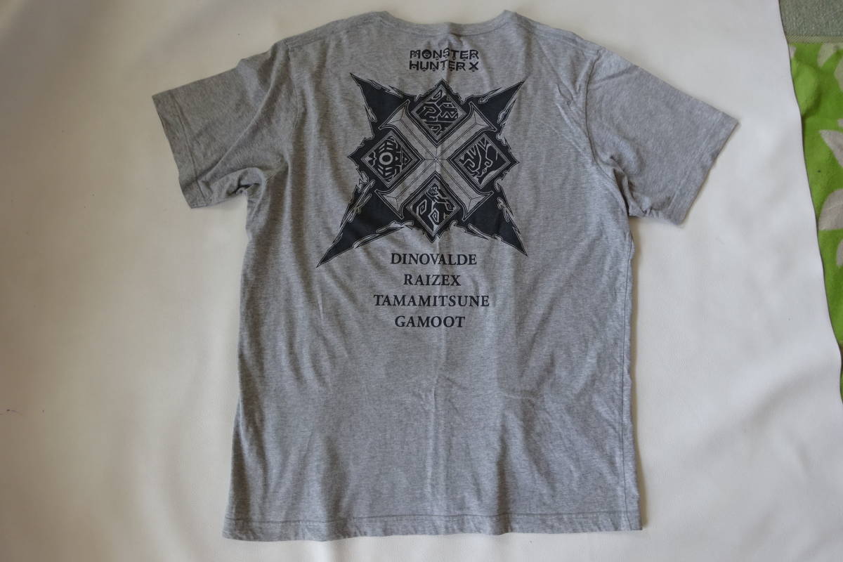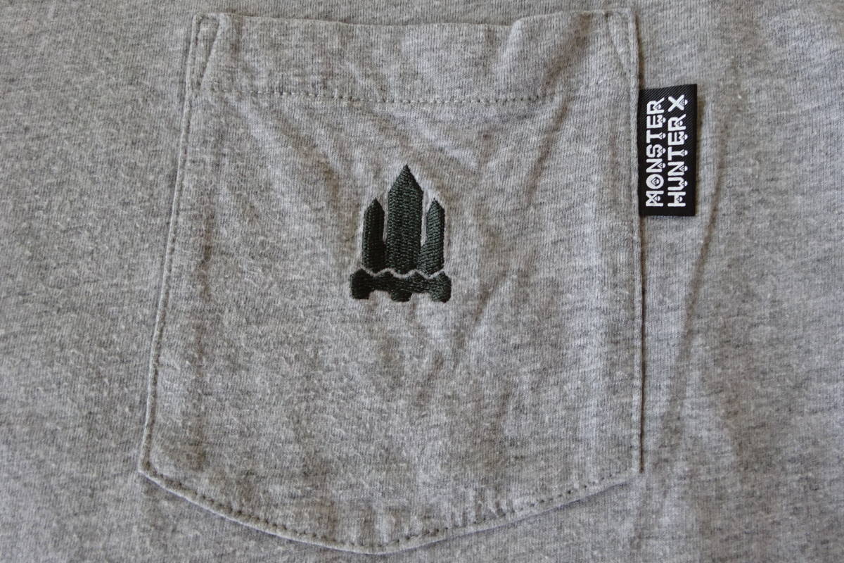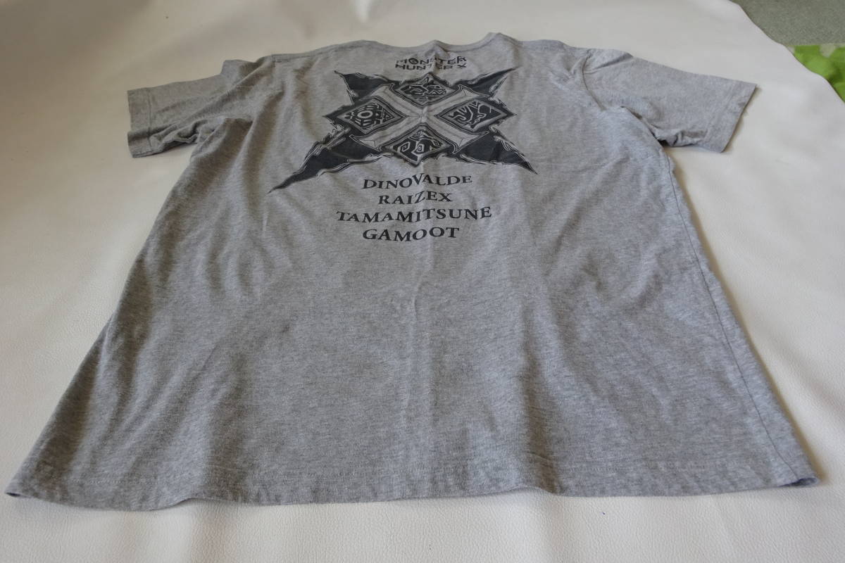 MONSTER HUNTER X/UNIQLO【モンスターハンター×ユニクロ/コラボTシャツ/グレー地プリント柄/胸元刺繍入り】XLサイズ