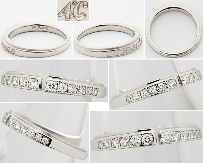 ☆高品質な宝石を使用した、エレガントかつスタイリッシュなデザインで人気のジュエリー・ブランド、「4℃」のリングです♪ ☆合計12石のダイヤは、無色系の美しいカラー・グレード♪ カットの状態も大変良好で、キラキラとした美しくまばゆい輝きが上質さを伝えます♪ ☆全体のデザインはスマートかつスタイリッシュな仕上がりとなっており、人気ブランドならではのファッショナブルな一品です♪ ☆リング枠は高級素材のPt950(プラチナ)製となり、末永くご使用いただける確かな品質でございます♪ ☆リング内側には4℃のブランド・マークのほか、素材を示す「Pt950」の刻印がございます♪ ☆参考価格は「10~12万円ほど」となります♪ ☆宝石鑑別書(ジャパン・ジェム・グレーディング・センター発行)の作成をご希望の場合には、3000円にて承ります♪ ☆写真でジュエリーが黒く写っている部分は、カメラの写り込みです♪ | |