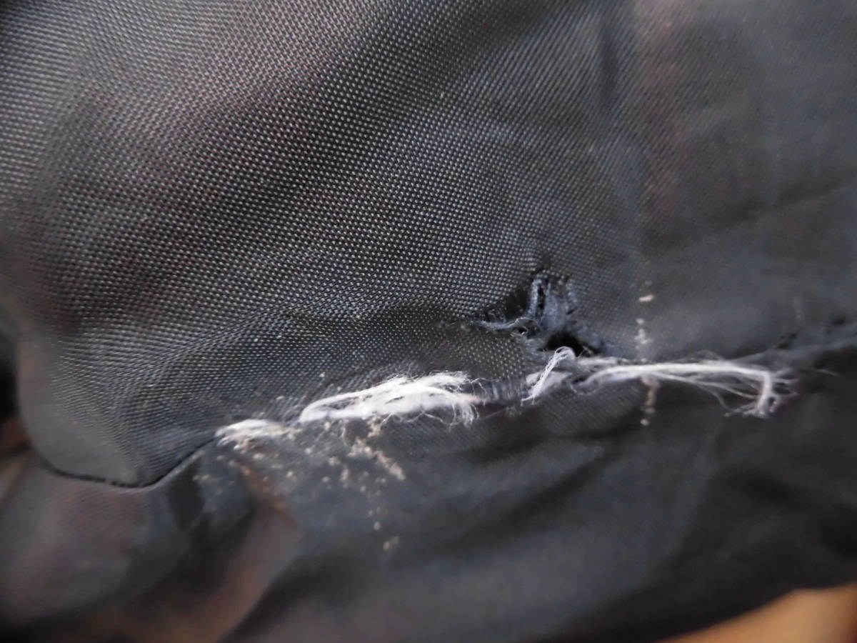 サイズ表記のタグを切るときに裏地も少し切ってしまって、破れがあります。表からは分かりません。