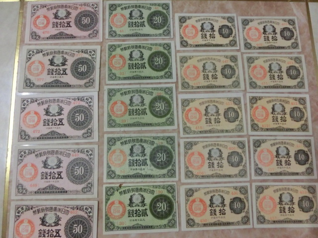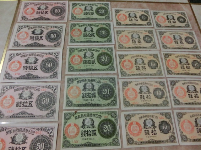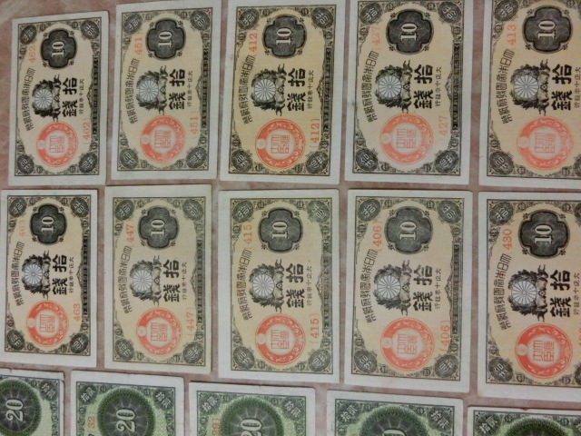 大正小額紙幣10銭 10枚・20銭 5枚・50銭 5枚の20枚セットです。