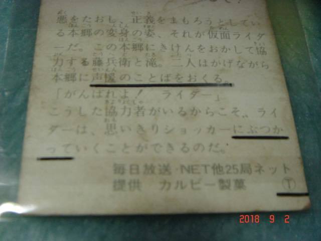 *カルビー 旧仮面ライダーカード NO.131×2枚 (T版&KR11版)  エラーカード『文章面:文章の違い』*