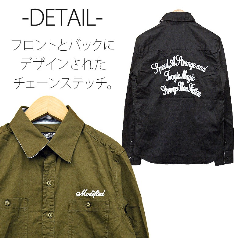フロントの胸元、バックにチェーン刺繍が大きく入っております。