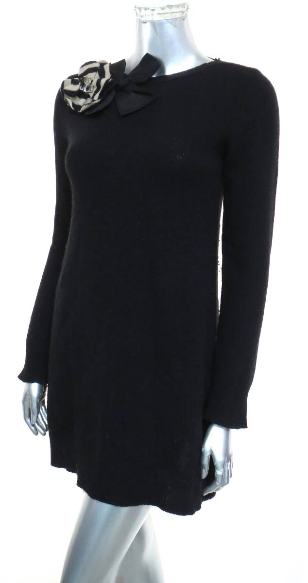 二点落札で送料無料! S048 イタリア製 Simonetta シモネッタ ウール 黒 ニット ワンピース 12/162 羊毛 ブラック