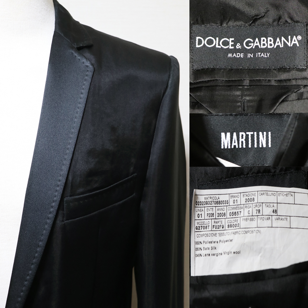 極美品のDOLCE&GABBANA ノッチドラペルMARTINI2枚重ねタキシードジャケット 黒48サイズです。