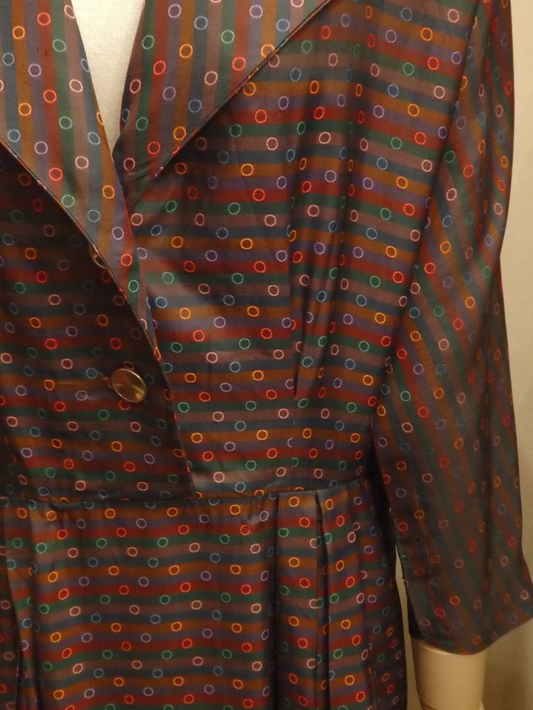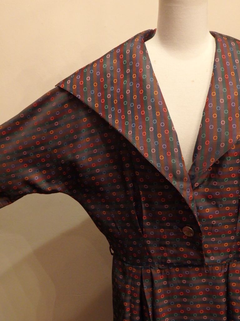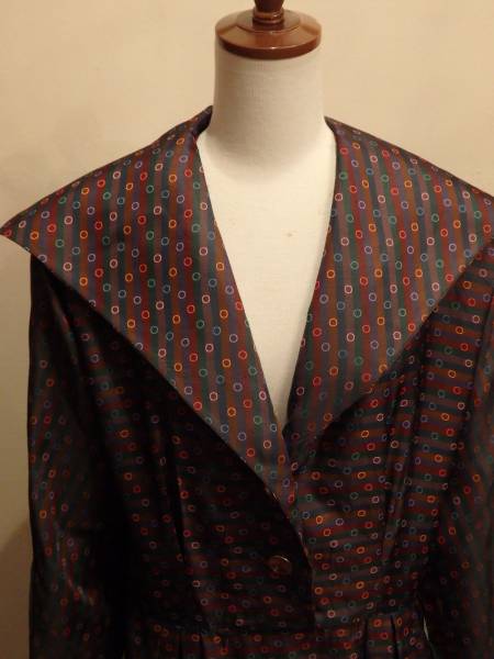 ボーダー地にドットの織柄が大変凝ったシルク生地をったっぷり使った、贅沢なハンドメイドドレスです