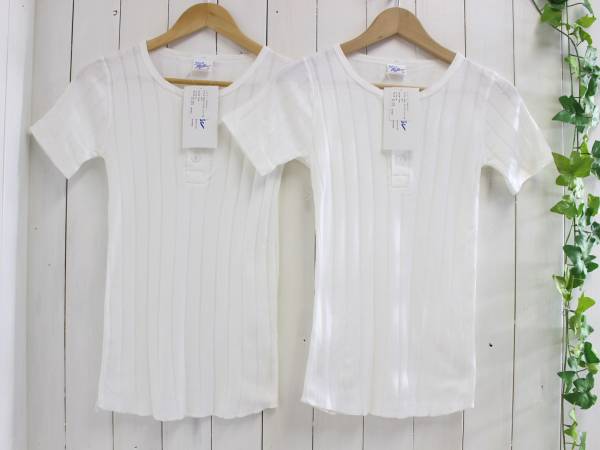 新品 USA製【R.P. MILLER ミラー】メンズ無地半袖ヘンリーネックTシャツパネルリブニット インナー 2枚セット(XS)【99-72】