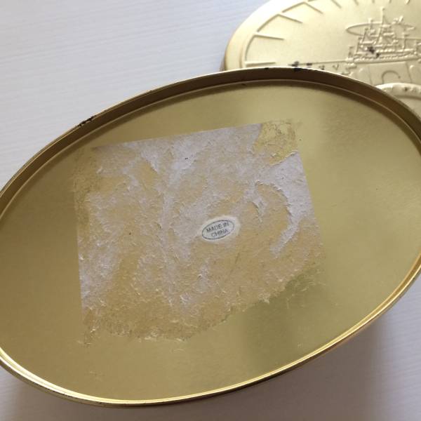 ・缶の裏にシールを剥がした跡があります。写真3枚目参照。