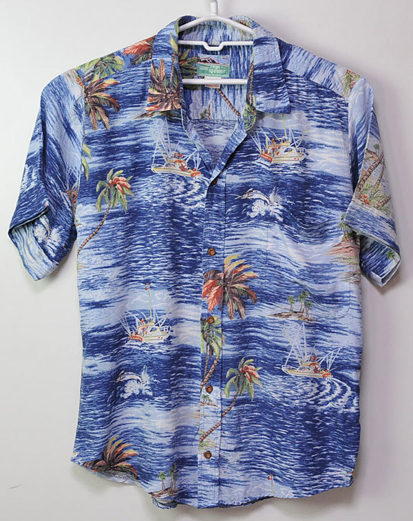 古着●レインスプーナー アロハシャツ トローリングボートと椰子 M相当 xwp