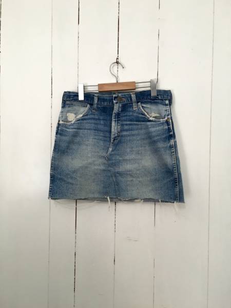 ○コメント:ラングラーの13MWZのビンテージデニムをリメイクしたスカートで雰囲気もよくかっこいいです。フロントジップにSCOVILL使用しています。この機会にぜひご検討ください。