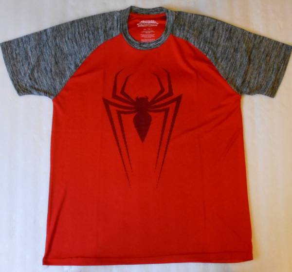 スパイダーマン Tシャツ Mサイズ 赤×グレー ( ストレッチ ラグランスリーブ spiderman marvel マーベル アメコミ