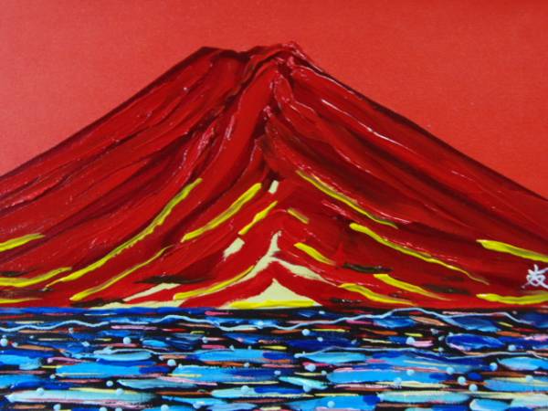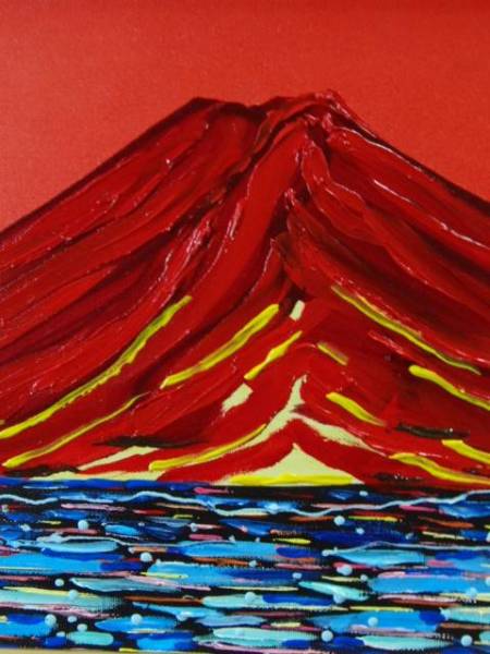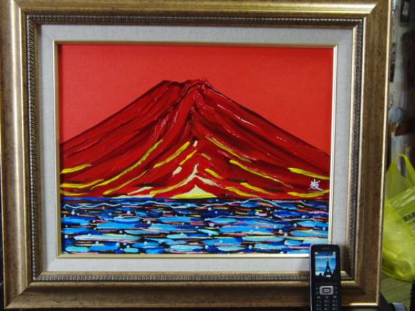 ≪国美協≫TOMOYUKI・友之、『海と赤富士』、油彩画、F6号:40,9×31,8cm、油絵一点物、新品高級油彩額付、直筆サイン・真作保証付