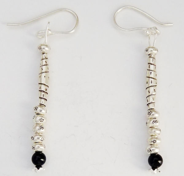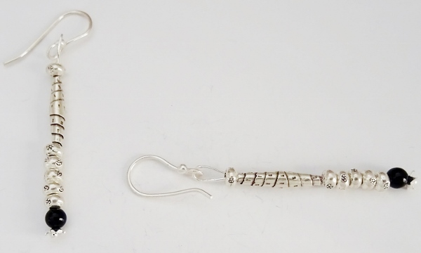 ◆カレンシルバー&天然石のロングピアス◆オニキス・黒めのう◆17hp08<Onyxis・Onyx・黒瑪瑙> |