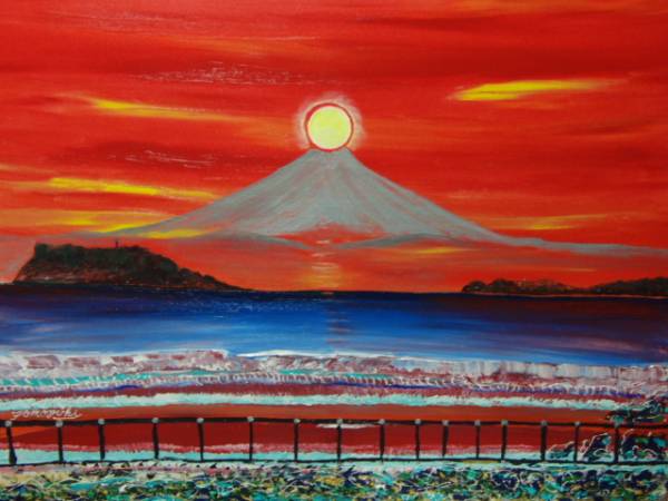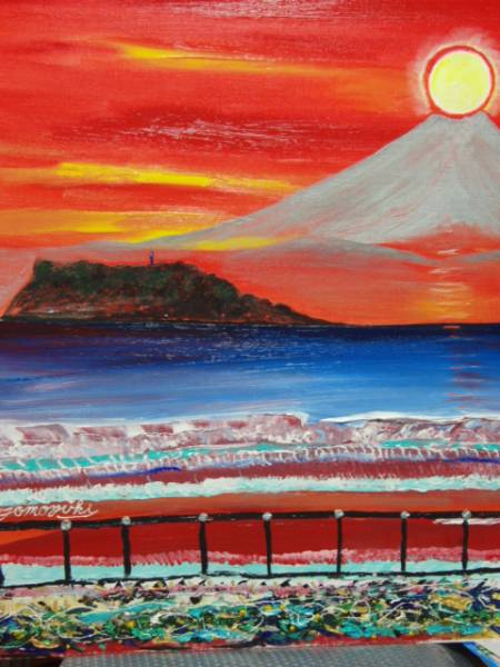 ≪国美協≫TOMOYUKI・友之、『江の島と富士』、油彩画・F50号:116,7×90,9cm、豪華、油絵、一点物、直筆サイン・真作保証付