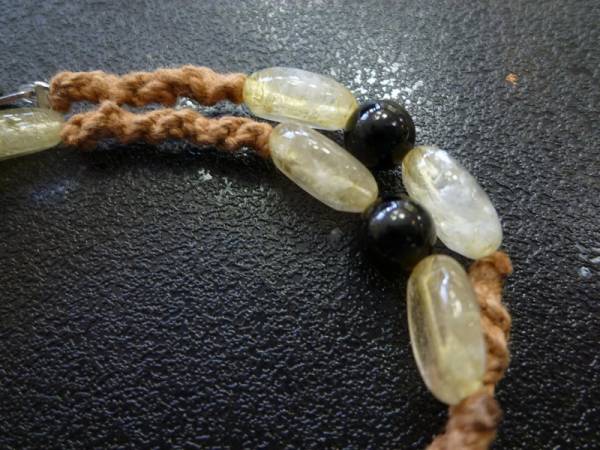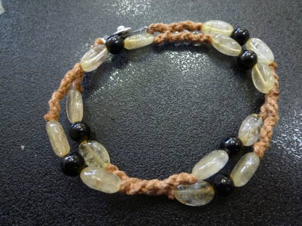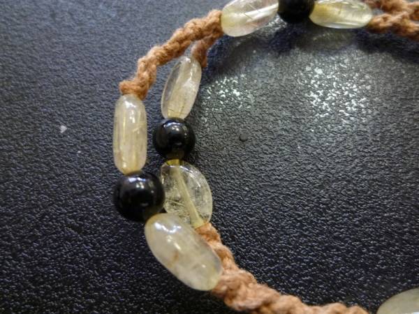 ゴールドルチルクォーツ ブラックトルマリン 手編み2連 ブレスレット