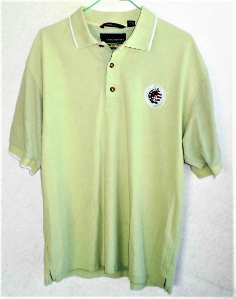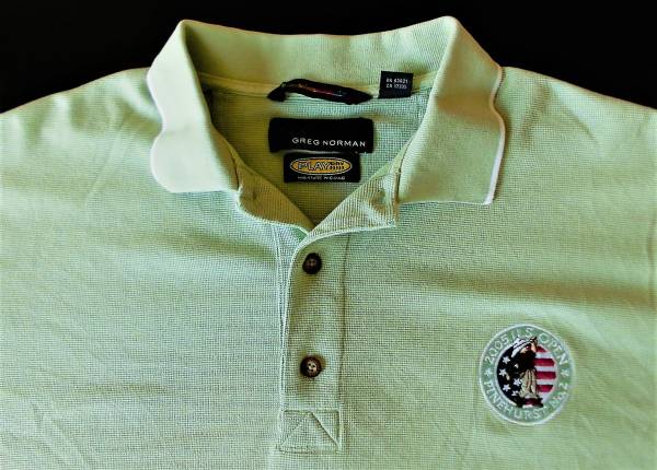 ★♪~即決、GREG NORMANグレッグ・ノーマンUSオープンゴルフ ロゴ刺繍入りストレッチ半袖ポロシャツ/メンズXL/美品~♪★