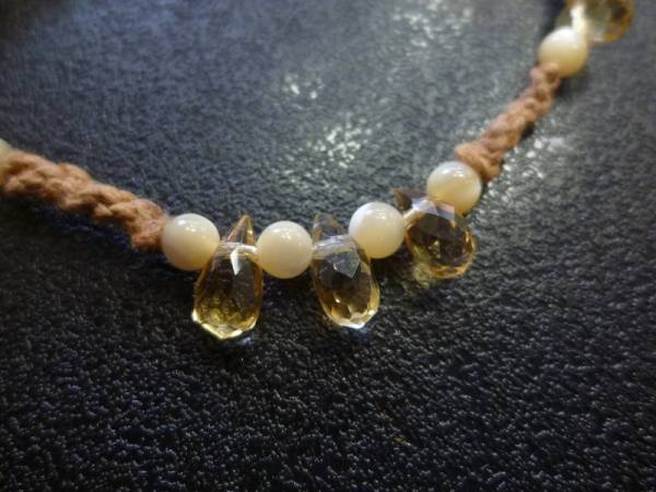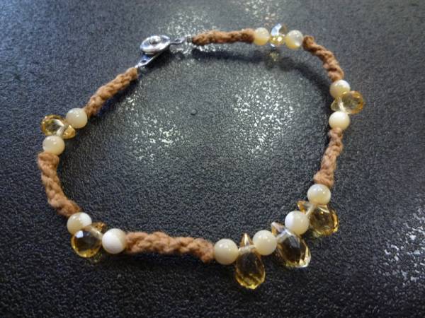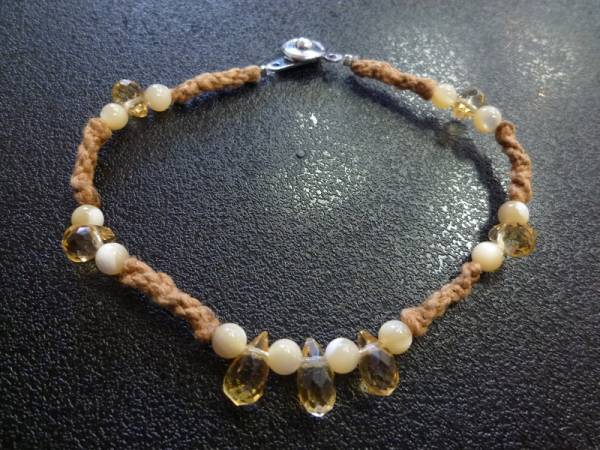 ☆シトリンしずく、マザーオブパールの高品質のマクラメ ブレスレット商品です。