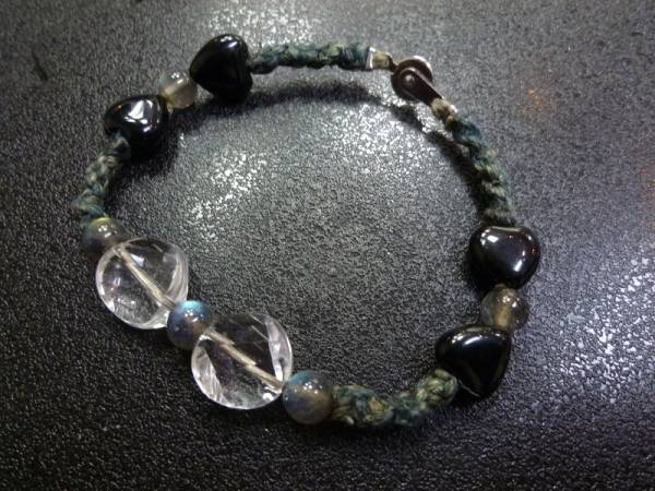 ☆水晶ツイスト、オニキスハート、ラブラドライトの高品質のマクラメブレスレット商品です。