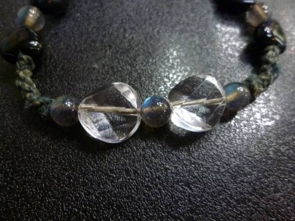 水晶 オニキス ラブラドライト マクラメブレスレット