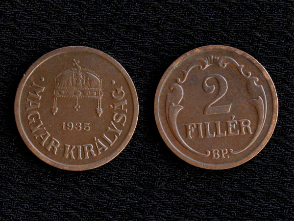 【ハンガリー】 2フィラー 1935 銅貨 聖イシュトヴァーンの王冠