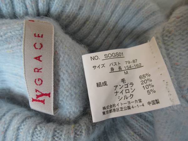 イトーヨーカドー購入(IY GRACE) アンゴラ&シルク混 タートルネックベスト M ブルーです。平置で肩幅31cm、脇下身幅39cm、丈53cm(ネック部含まず)です。とても柔らかくて上質です。1回使用し、クリーニング済みの美品です。ご検討宜しくお願い致します。ノークレーム・ノーリターンでお願いします。(I95)
