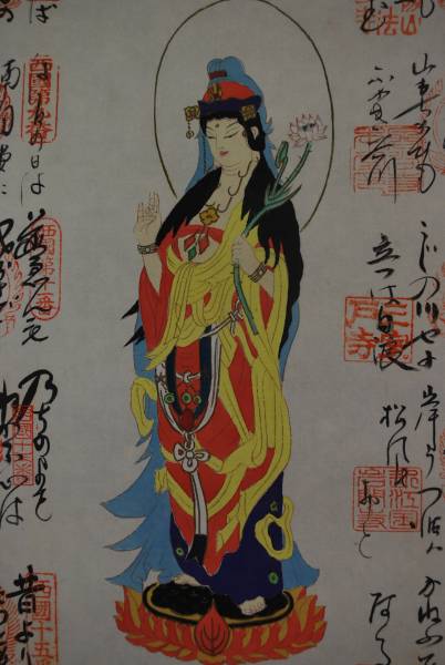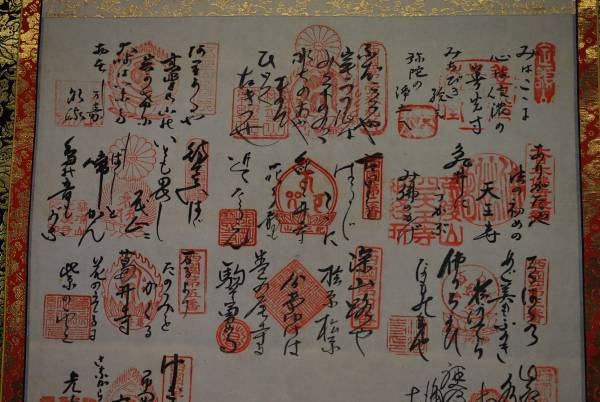 真作/西国 三十三ヶ所霊場集印肉筆掛軸/御詠歌//掛軸☆宝船☆J-839 J