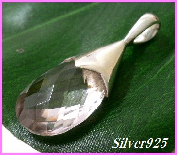 シルバー925銀の天然石 水晶[多面カット]ティアドロップ ペンダント/ALL50%OFF