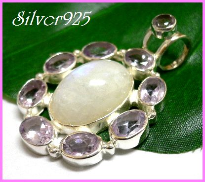 シルバー925銀の天然石ムーンストーン&アメジスト8石ジュエリー ペンダント