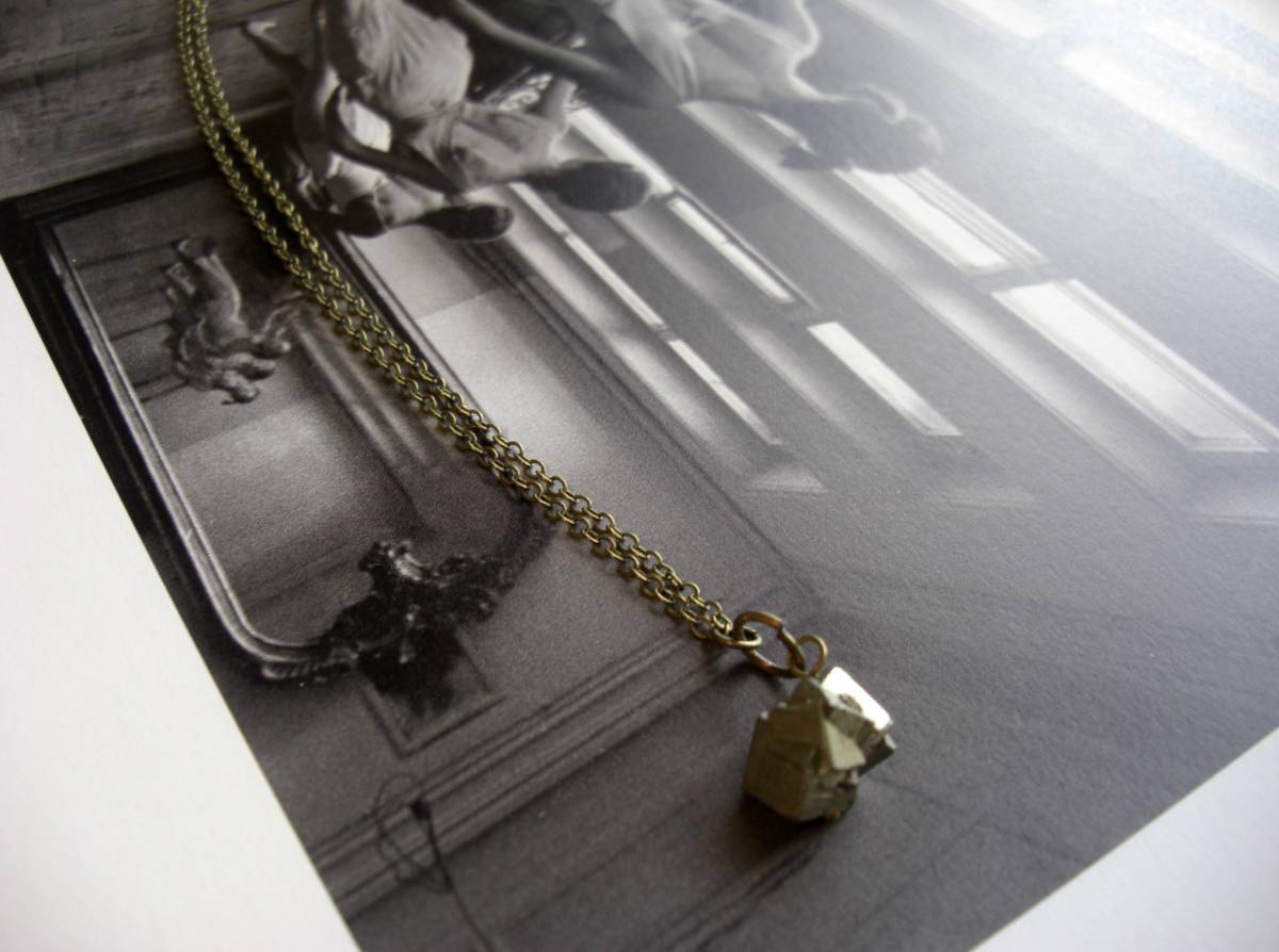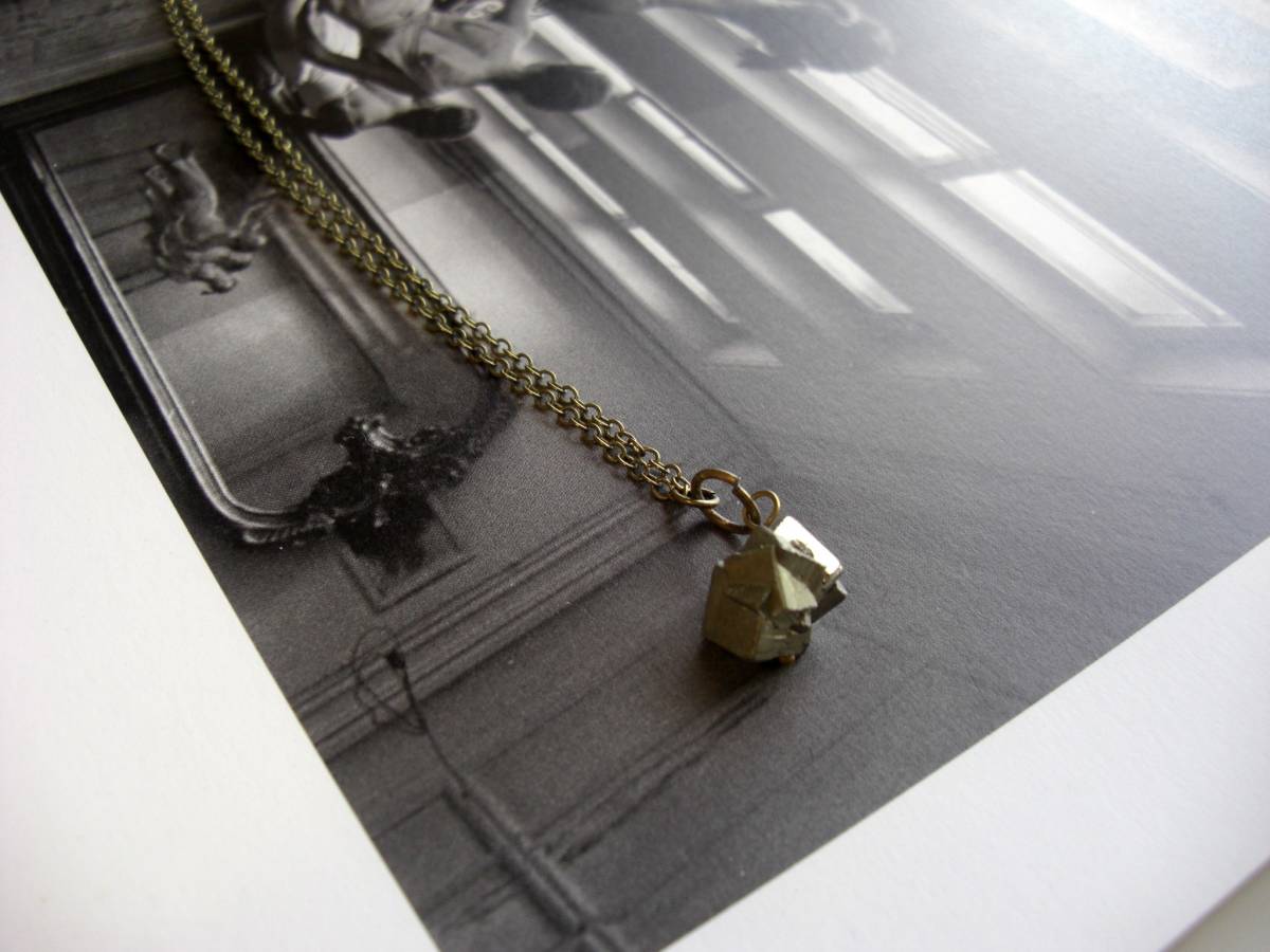 テーマは大人可愛い・・シリーズです♪物語の中に・・神秘的なゴールデンパイライトのネックレスです♪ブロンズ色のメタリックな輝きが甘すぎ ない大人のロマンチックしています♪♪14ミリ×13ミリ位のラフカットのパイライトには華奢なチェーンを合わせました♪長さは84センチ+ アジャスター13センチで最長97センチ位です♪お揃いのネックレスやブレスレットも出品しています♪シンプルで飽きのこない いつまでも着けられるデザインを考えて作りました!ハンドメイドをご理解頂いてノークレーム、ノーリターンでお願いします