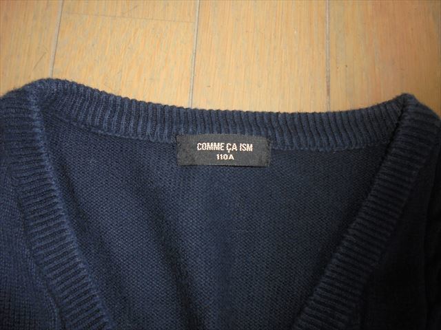 商品説明 コムサイムズ★紺色上品なカーディガン、綿ニット★110