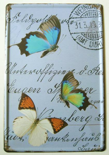 ★送料無料★【ブリキ看板】バタフライ★蝶★アンティーク調★レター★アメリカン雑貨★パプ・バー/A-429