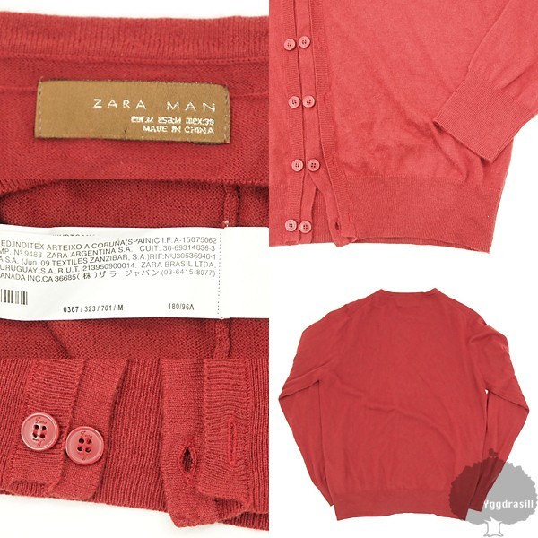商品名:YGG★オシャレ★ZARA MAN★薄手 カーディガン 赤茶系 M トップス