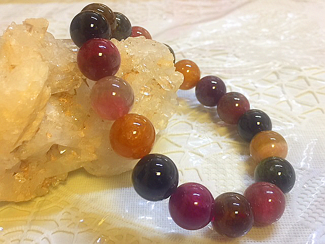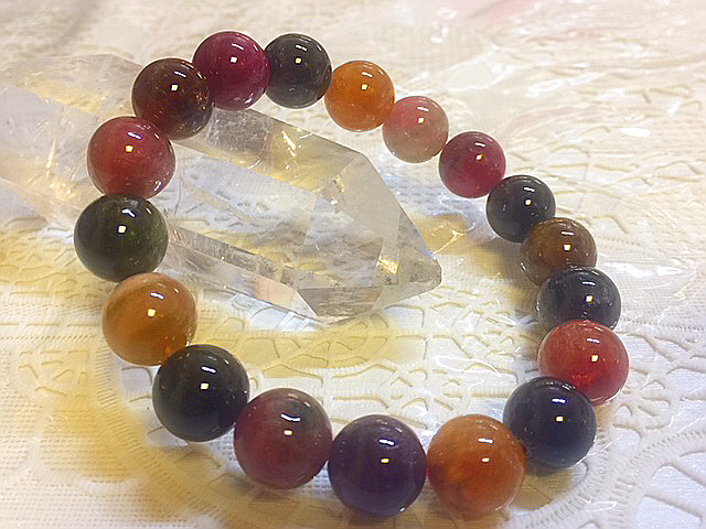 天然石『マルチカラートルマリン』ブレス11.5mm 電気石 健康石 パワーストーン 最強の運up 厄除けお守り 厄除け 恋愛運 癒しお守り