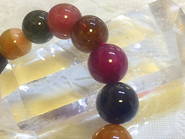 これらの、様々な色のトルマリンが混在している状態をキャンディカラー(またはマルチカラー、ミックスカラーなど)と呼びます。それぞれの石が役割を担い、様々な事柄や場面において力を貸してくれるので、まさにオールマイティーなパワーストーンといえます。個々の波動が同調し、増幅し合って、素晴らしいパワーを発揮してくれるので、パワーストーン初心者やトルマリンの良さを知りたい…という人には、キャンディカラータイプがおすすめです。