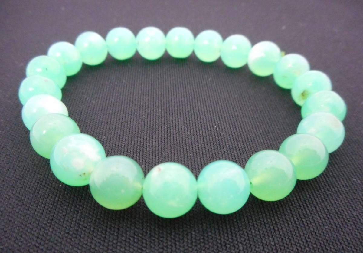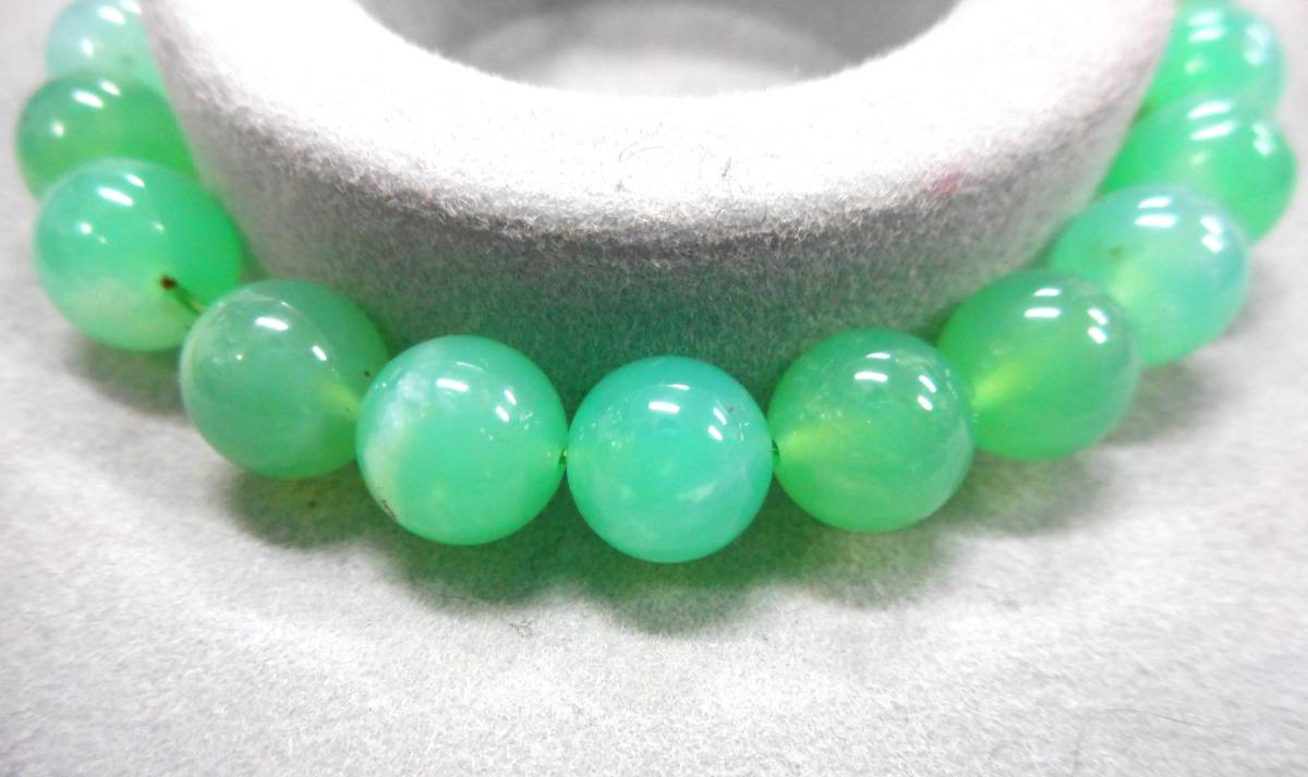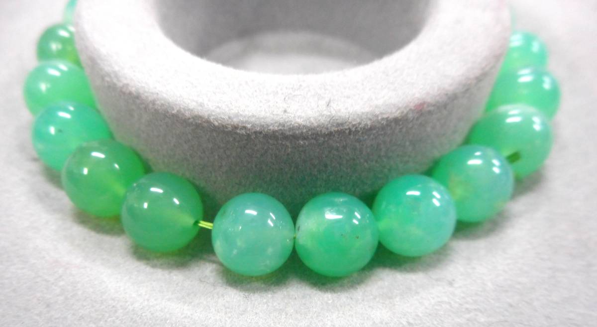 新品 極上クリソプレーズ オーストラリアンジェイド 翡翠 数珠 ブレスレット 15.8 玉径7.9mm
