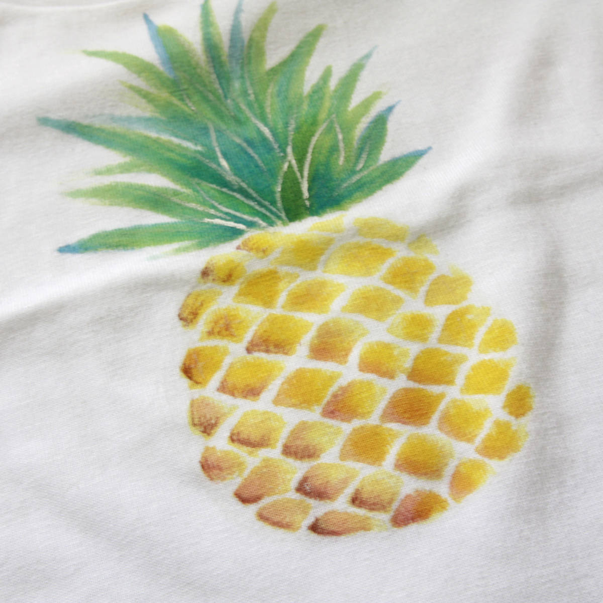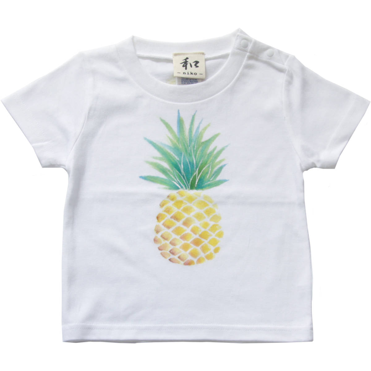 ハンドメイド 手描きTシャツ キッズTシャツ パイナップル柄Tシャツ 手描きで描いた、パイナップル柄Tシャツ | |||