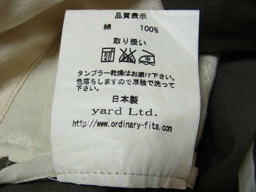 日本製【0】Ordinary fitsオーディナリーフィッツ パンツ 片ポケ トラウザー