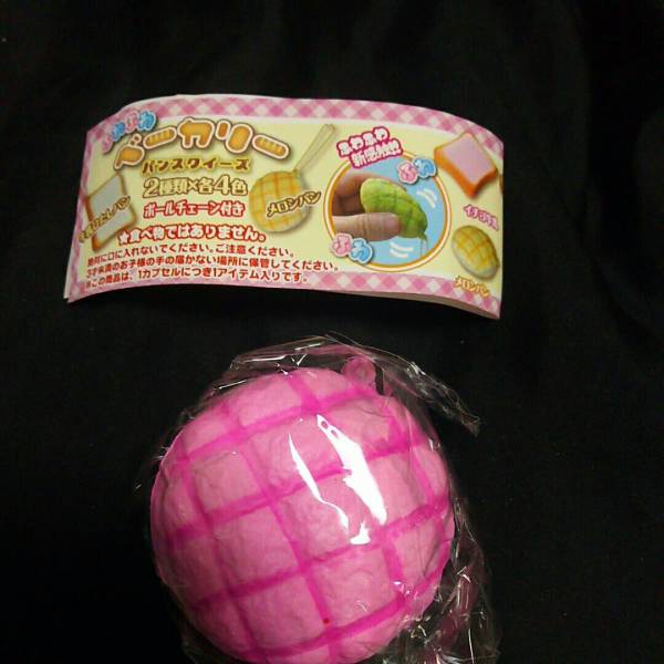ガチャガチャ カプセルトイの ふわふわ ベーカリー パン スクイーズの イチゴメロンパン です。
