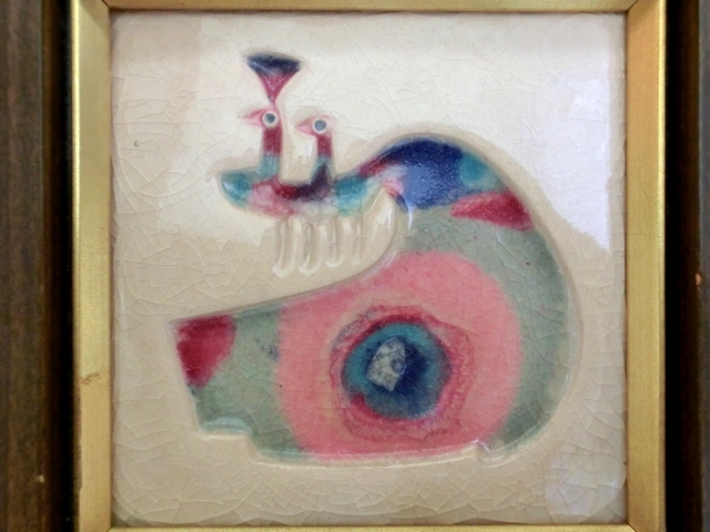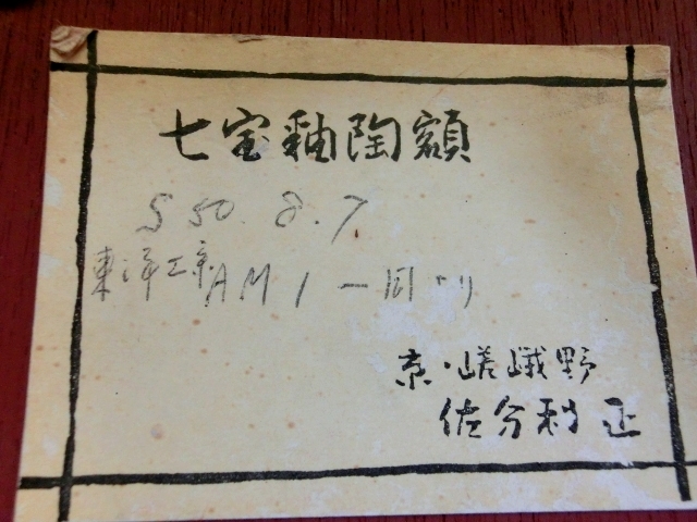 陶板■七宝釉陶額 京都嵯峨野「佐分利正」孔雀 額 絵 作家物 古美術 時代物 骨董品■